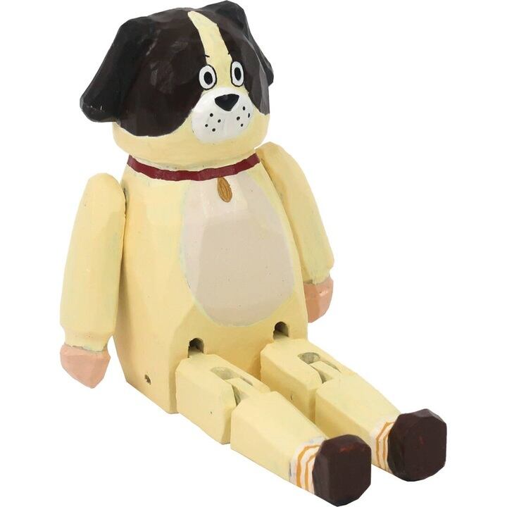 天然木のボディは可動式なので、棚やテーブルなど、シーンに合わせた座り方でディスプレイすることができます。